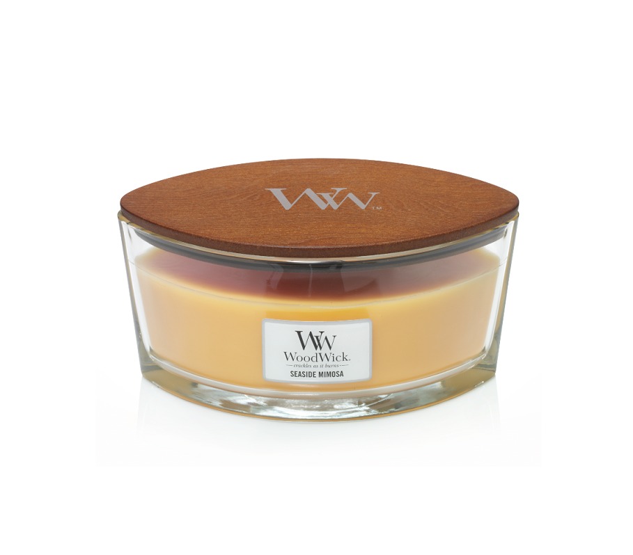 Geurkaarsen van WoodWick hebben een houten lont waardoor ze een knapperend geluid geven tijdens het branden. Deze Ellipse heeft ongeveer 50 branduren.